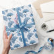 Papel De Presente Casamento Azul Botânico Moderno e Branco