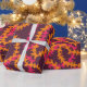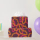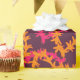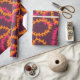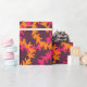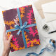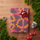Embrulho de presente de casamento havaiano com um padrão super estiloso de guirlandas de flores lei laranja e rosa sobre roxo