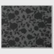 Uma cinza e um papel de embalagem floral preto, com uma silhueta de florais contra um fundo de cor sólida de cinza média.