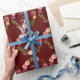Um belo papel de embrulho floral vermelho e burguês, que apresenta um lindo padrão de cor d'água da flor da peônia com os nomes dos casais personalizados nos círculos. Um papel de embrulho de casamento elegante para uma ocasião de outono.