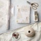 Papel bonito para dar presentes de casamento. Um padrão de noiva branco e creme com detalhes dourados