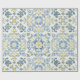 Papel De Presente Casamento Elegante De Limão Azulejo Azul Italiano