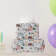 Numa pequena cidade, pessoas caminham entre casas cobertas de neve e pinheiros. Um padrão perfeito para presentes de inverno!