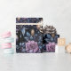 Este maravilhoso padrão de Natal Gótico apresenta ornamentos de crânio pendurados e fundo floral em tons roxos e cor-de-rosa perfeitos para a temporada de férias.