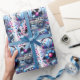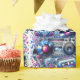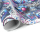 Ilustrações dispersas de fitas cassetes, caixas de expansão, registros vinílicos e fones de ouvido através do papel, da década de 1980. Incorpora notas musicais e ondas sonoras para adicionar mais movimento.
