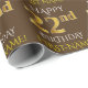 Este design de papel de embrulho apresenta uma mensagem como "FELIZ 22º ANIVERSÁRIO", com o "22º" a ter uma aparência falsa/imitação de ouro. Ele também apresenta um nome que pode ser personalizado, e um fundo castanho colorido. Talvez possa ser utilizada quando se dá presentes para o vigésimo segundo aniversário de alguém. [~Z0000133]