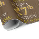 Este design de papel de embrulho apresenta uma mensagem como "FELIZ 27º ANIVERSÁRIO", com o "27º" a ter uma aparência falsa/imitação de ouro. Também apresenta um nome personalizado e um fundo castanho. Talvez possa ser utilizada quando se dá presentes para o vigésimo sétimo aniversário de alguém. [~Z0000133]