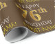 Este design de papel de embrulho apresenta uma mensagem como "FELIZ 76º ANIVERSÁRIO", com o "76º" com aparência falsa/imitação de ouro. Ele também apresenta um nome que pode ser personalizado e um fundo castanho. Talvez possa ser utilizado quando se dá presentes para o setenta e sexto aniversário de alguém. [~Z0000133]