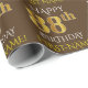 Este design de papel de embrulho apresenta uma mensagem como "FELIZ 88º ANIVERSÁRIO", com o "88º" com aparência falsa/imitação de ouro. Ele também apresenta um nome que pode ser personalizado, e um fundo castanho colorido. Talvez possa ser utilizada quando se dá presentes para o oitavo aniversário de alguém. [~Z0000133]