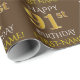 Este design de papel de embrulho apresenta uma mensagem como "FELIZ 91rua ANIVERSÁRIO", com a "91ruas" com aparência falsa/imitação de ouro. Também apresenta um nome personalizado e um fundo castanho. Talvez possa ser utilizado quando se dá presentes para o nonagésimo primeiro aniversário de alguém. [~Z0000133]