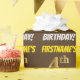Este design de papel de empacotamento apresenta uma mensagem como "4º ANIVERSÁRIO DO PRIMEIRO NOME!", com o "4º" a ter uma aparência falsa/imitada de cor dourada, e com o nome e "ANIVERSÁRIO" numa fonte divertida e ousada. O nome pode ser personalizado e o fundo é castanho. Um papel de embrulho como este poderia talvez ser usado no embrulho de presentes de aniversário que são dados a alguém em comemoração do seu quarto aniversário. [~Z0000211]