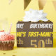 Este design de papel de empacotamento apresenta uma mensagem como "PRIMEIRO NOME DO 50º ANIVERSÁRIO!", com o "50º" a ter uma aparência de cor falsa/imitação em forma de ouro, e com o nome e "ANIVERSÁRIO" numa fonte divertida e ousada. O nome é personalizável e o fundo é castanho colorido. Um papel de embrulho como este poderia talvez ser usado para embrulhar presentes de aniversário que são dados a alguém em comemoração do seu quinquagésimo aniversário. [~Z0000211]