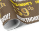 Este design de papel de empacotamento apresenta uma mensagem como "PRIMEIRO NOME DO 59º ANIVERSÁRIO!", com o "59º" a ter uma aparência de cor falsa/imitada em forma de ouro, e com o nome e o "ANIVERSÁRIO" numa fonte divertida e ousada. O nome pode ser personalizado e o fundo é castanho. Um papel de embrulho como este poderia talvez ser usado para embrulhar presentes de aniversário que são dados a alguém em comemoração de seus cinquenta e nono anos. [~Z0000211]