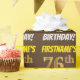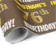 Este design de papel de embrulho apresenta uma mensagem como "FIRSTNAME'S 76th BIRTHDAY!", com o "76º" a ter uma aparência falsa/imitada de cor dourada, e com o nome e "BIRTHDAY" numa fonte divertida e ousada. O nome pode ser personalizado, e o fundo é castanho. Um papel de embrulho como este poderia talvez ser usado para embrulhar presentes de aniversário que são dados a alguém em comemoração de seus setenta e seis anos. [~Z0000211]