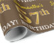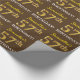 Este design de papel de embrulho apresenta uma mensagem como "Samantha's 57th BIRTHDAY!", com o "57º" a ter uma aparência falsa/imitada de cor dourada. O nome pode ser personalizado, e o fundo é castanho. Talvez possa ser utilizado quando se dá presentes para o cinquenta e sétimo aniversário de alguém. [~Z0000180]