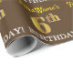 Este design de papel de embrulho apresenta uma mensagem como "FirstName’s 6 BIRTHDAY!", com o "6" a ter uma aparência de cor falsa/imitada em ouro. O nome pode ser personalizado e o fundo é castanho. Talvez possa ser utilizada quando se dá presentes para o sexto aniversário de alguém. [~Z0000180]
