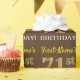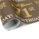Este design de papel de embrulho apresenta uma mensagem como "First-Name’s 71rua BIRTHDAY!", com a "71ruas" a ter uma aparência falsa e imitada de cor dourada. O nome pode ser personalizado e o fundo é castanho. Talvez possa ser utilizado quando se dá presentes para o 71º aniversário de alguém. [~Z0000180]