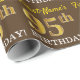 Este design de papel de embrulho apresenta uma mensagem como "First-Name’s 95th BIRTHDAY!", com o "95º" a ter uma aparência de cor falsa/imitada em ouro. O nome pode ser personalizado e o fundo é castanho. Talvez possa ser utilizado quando se dá presentes para o nonagésimo quinto aniversário de alguém. [~Z0000180]