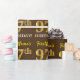 Este design de papel de embrulho apresenta uma mensagem como "FirstName’s 97th BIRTHDAY!", com o "97º" a ter uma aparência de cor falsa/imitada em ouro. O nome pode ser personalizado e o fundo é castanho. Talvez possa ser utilizado quando se dá presentes para o nonagésimo sétimo aniversário de alguém. [~Z0000180]