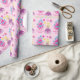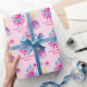 Um bonito papel de embrulho de aniversário da princesa personalizada, com uma linda menina loira em um vestido de rainha com arcos cor-de-rosa em frente a um castelo rosa. Um belo presente personalizado para uma menina. Adicione o nome do seu filho debaixo dos passos do castelo deste design de conto de fadas.