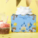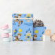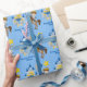 Papel de embrulho de festa de aniversário de Feira Renascentista Cuta, com cavaleiro, junto a um castelo azul da meia-idade. Um presente de crianças legal e personalizado para um pequeno príncipe que ama heróis fantásticos dos tempos antigos.