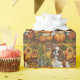 Celebre a beleza do outono com esta pintura vibrante de um cão sentado ao lado de uma bela colheita de Ação de Graças. As ricas cores do outono de abóboras, girassóis e paisagem rural rústica criam uma atmosfera quente e convidativa, perfeita para a decoração sazonal de qualquer amante de cachorro.