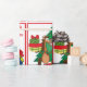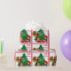 Cavalo de cartum segurando presentes em frente a uma árvore de Natal e uma cowgirl em um cavalo de palito impresso em papel de embalagem de presentes de férias. O texto incluído diz "Um presente para você". Veja este design em outros itens de feriado na Loja de Dias de Rodeio.