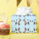 Papel de embrulho divertido e bonito, com um cavalo tocando violino. Completar com balões e um presente.