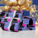Um design de fundo roxo com a silhueta preta de um cavalo e um coração rosa e a palavra "Cavalos". O papel perfeito de embrulho de aniversário para o amante de cavalos em sua vida!