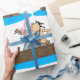 Um homem da caverna numa canoa a remar. Este design parece realmente eficaz nestes papéis de enrolamento