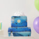 Cenário de inverno azul, escuro e claro com renas, sol pálido, decoração de Natal com decoração de Casado Geométrico do Natal