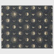 Elegant moon phase and celestial pattern wrapping paper featuring crescent moons, stars, and radiant lunar details on a dark background. Ideal for astrology lovers, moon enthusiasts, spiritual seekers, stargazers, and fans of mystical celestial style.
