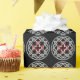 Um invólucro com um padrão de design de nó Celta com uma cruz quadrada vermelha no centro.