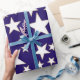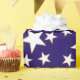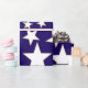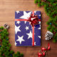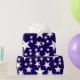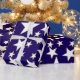 Estrelas dispersas, grandes e pequenas, brancas com borda fina de ouro, sobre fundo comum. Uma boa escolha para quase qualquer ocasião.