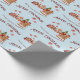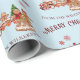 Este papel festivo e personalizado de Natal ou de folheto de férias apresenta um tema de pão de gengibre saudável sobre um fundo azul de bebê macio. Uma imagem de um trem de natal é fotografada no centro, com um pequeno gengibre giro em um de seus carrinhos. Uma família de pessoas de pão de gengibre é fotografada em frente ao trem. Pequenos biscoitos vermelhos com flocos de neve estão nevando do céu. Uma amostra de saudação de Feliz Natal é impressa acima da árvore e um nome de família de amostras é impresso abaixo. Você pode personalizar a quebra de presente para incluir seu próprio nome personalizado ou texto.