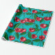Papel De Presente Cerejas vermelhas em turquesa