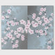 Uma cereja rosa empoeirada floresce num fundo azul empoeirado. Para todos que amam flores e designs florais asiáticos.