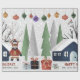Papel De Presente Cervo de inverno, árvores e casa Natal férias