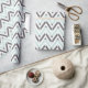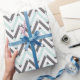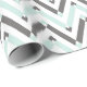 Papel de embrulho moderno com azul de menta geométrica, branco, padrão de fêmur de cinza.