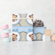 Papel de embrulho de chá de bebê de macaco marrom e azul bebê adorável.