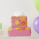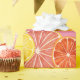Frutas cítricas caprichosas em tons de rosa, coral, laranja e toranja vermelha rubi. As fatias de cítricos desenhadas à mão estão em um padrão divertido para uma adição suculenta à decoração de um chá de noiva colorido.