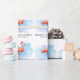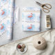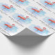 Uma explosão de aquarela moderna em azul e roxo com flamingo rosa usando chapéu de Papai Noel em papel de embrulho. Torne-o pessoal adicionando o nome da sua família.