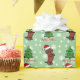 O papel de envolvimento bonito e engraçado dos desenhos animados do Dachshund para o Dachshund ventila!! Um filhote de cachorro de cabelo liso vermelho adorável de Doxie está sentando-se acima com seu/seu chapéu do papai noel!! Design animador do Natal. Você pode personalizar o texto e o mais! Verde da hortelã e teste padrão claros do floco de neve. Os desenhos animados originais e lunáticos do cão criaram por Naomi Ochiai de Japão.