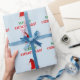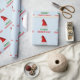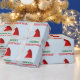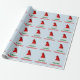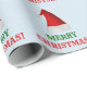 Características deste design Natal-temáticos do papel de envolvimento um chapéu vermelho do Natal do papai noel, e a mensagem "FELIZ NATAL!" no vermelho e no texto colorido verde.