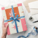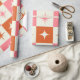 Papel De Presente Checkered Mid Century Atomic Stars Pink Orange