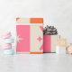 Add atomic era vibes to your gift wrap with this wrapping paper sheets featuring checkered mid century boomerangs pattern with atomic starbursts in pink and orange. It's elegant gift wrap for retro themed parties and celebrations for mid mod fans