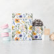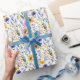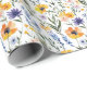 This vibrant floral wrapping paper features a lively pattern of wildflowers in warm yellows, oranges, purples, and blues, accented with lush green foliage. The design captures the essence of a blooming meadow with its watercolor-style illustrations that create a cheerful and uplifting mood. Perfect for adding a touch of spring to any gift or occasion, this paper is ideal for celebrations and everyday surprises alike.