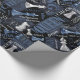 Papel De Presente Chess Termos e Peças Prateadas e Azul ID784