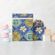 Chic Blue Teal Siciliano Citrus Mediterranean Wrappaper . Um fino padrão botânico floral de jardim de citros inspirado pela brilhante arte temática italiana do verão da majolica azulejos cerâmicos sicilianos em cores amarelas azuis. clique no link "personalizar mais" e use a ferramenta design para modificar o design se você quiser ou personalizá-lo sobre outro produto de sua escolha. Seja para dia de os namorados, Natal ou como qualquer ocasião, este papel de embrulho parecerá absolutamente espantoso.
