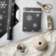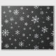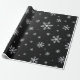 Elegant Christmas wrapping paper with white snowflakes on a black background, perfect for holiday gifts and winter celebrations. Order today and add a special touch.